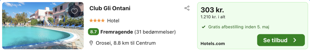 5 dage på Sardinien for kun 1.622,- per person inkl. fly og godt hotel med pool!