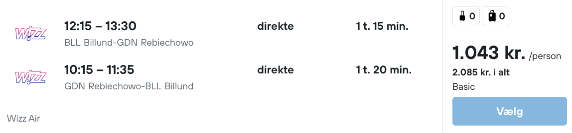 Flyprisen inkluderer kun en lille taske, men bagage kan tilkøbes.