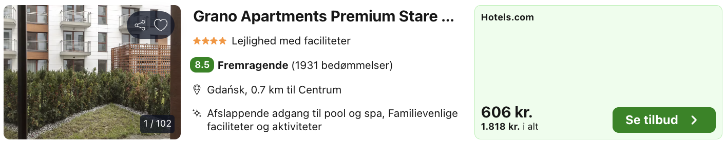 4 dages forlænget weekend i Gdansk i påskeferien for kun 1.720,- per person inkl. fly og 4-stjernet lejlighedshotel med pool og central beliggenhed!