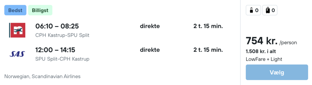 Vi har fundet billige flybilletter fra København til Split: