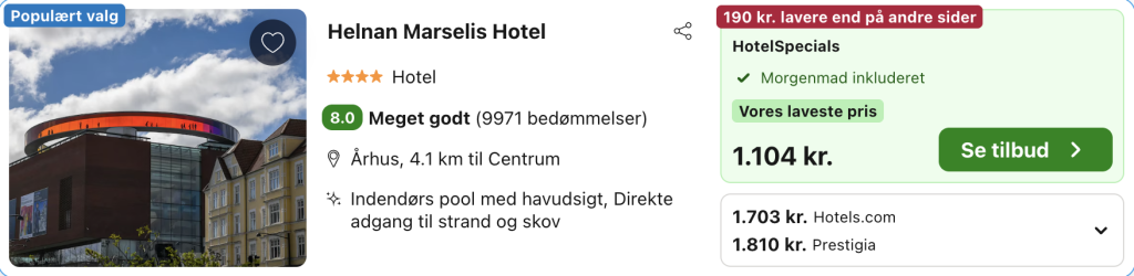 Bemærk: Den samlede pris for 2 personer i et dobbeltværelse er 1.104,- hvilket svarer til 552,- per person. Husk at logge ind / oprette en gratis bruger på trivago samt hos hoteludbyderen. Derved opnås den bedste pris! Rejs365 er ikke et rejsebureau, men en rejseside der finder gode tilbud! – Vi modtager kommission, men det påvirker ikke din pris! Læs mere her
