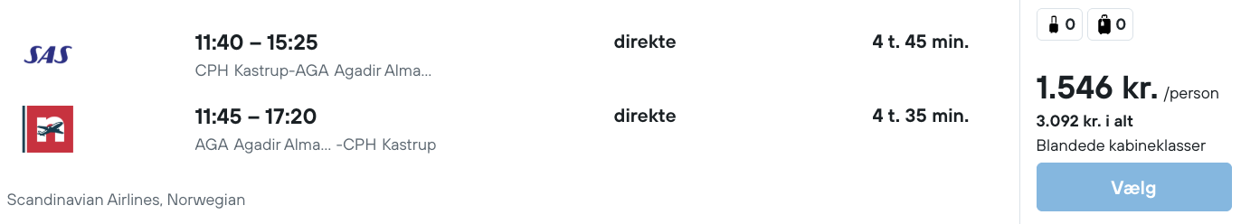 Vi har fundet billige flybilletter fra København til Agadir: