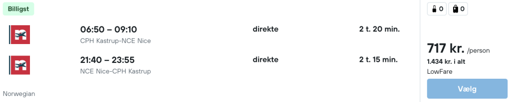 Flyprisen inkluderer kun en lille taske, men bagage kan tilkøbes.