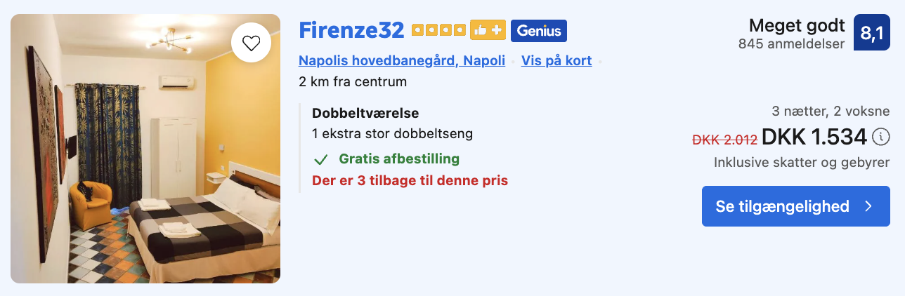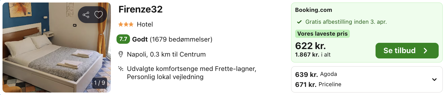 Husk at logge ind / oprette en gratis bruger på trivago samt hos Booking.com. Derved opnås den bedste pris!