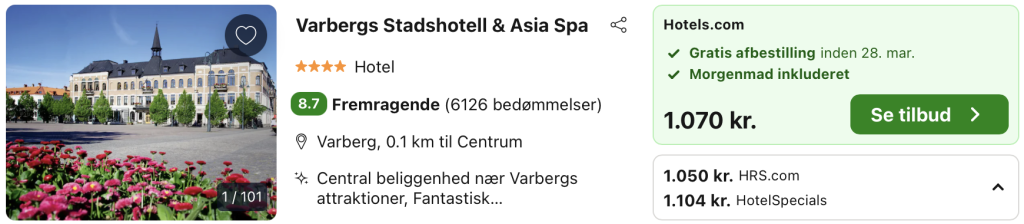 Vi har taget udgangspunkt i et ophold fra 29. – 30. marts på Varbergs Stadshotell & Asia Spa, der ligger centralt i Varberg, kun få minutters gang fra havet, fæstningen og byens hyggelige gågader. Hotellet kombinerer klassisk charme fra det historiske byhus med moderne luksus og en afslappet atmosfære. Værelserne er elegant indrettet med komfortable senge, dæmpede farver og stilfulde detaljer, som giver en rolig ramme om opholdet – perfekt til både weekendophold og længere pauser fra hverdagen.