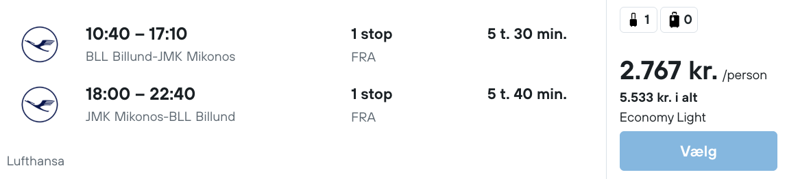 På vores flysøgningsmaskine har vi fundet billige flybilletter fra København og Billund til Mykonos: