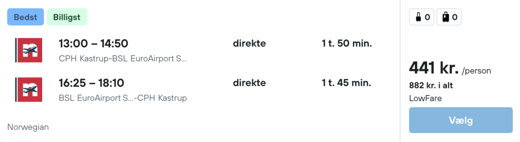 På vores flysøgningsmaskine har vi fundet billige flybilletter fra København til Basel: