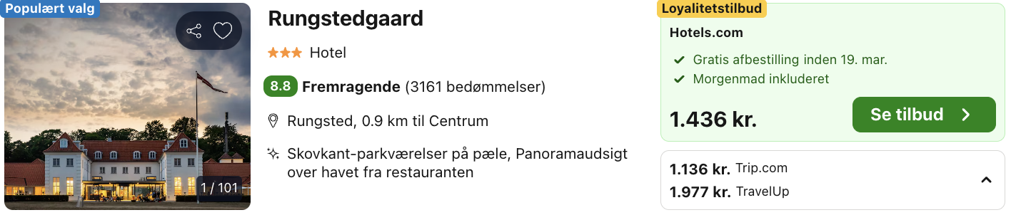Bemærk: Den samlede pris for opholdet er 1.136,- for 2 personer i et dobbeltværelse, hvilket svarer til 568,- per person. Der kan være mindre prisforskelle på mobil og pc. Undersøg med fordel, hvor det er billigst inden bestilling. Rejs365 er ikke et rejsebureau, men en rejseside, der finder gode tilbud! – Vi modtager kommission, men det påvirker ikke din pris! Læs mere her |