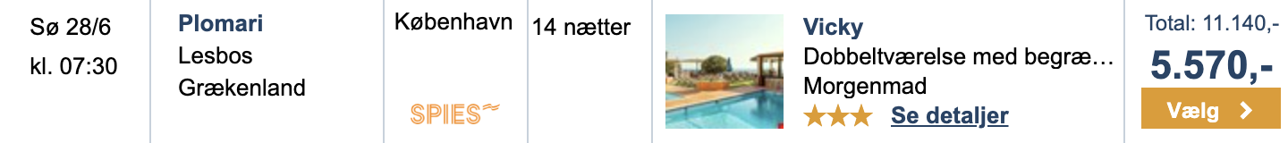 På Travelmarket har vi hos Spies har vi fundet et godt tilbud fra København til Lesbos: