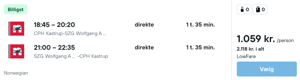 På vores flysøgningsmaskine har vi fundet billige flybilletter fra København til Salzburg: