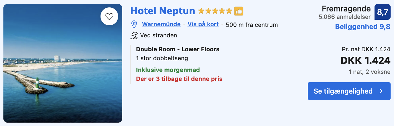 Vælg booking.com på trivago og opret en gratis bruger eller log ind. Derved opnås den billigste pris.