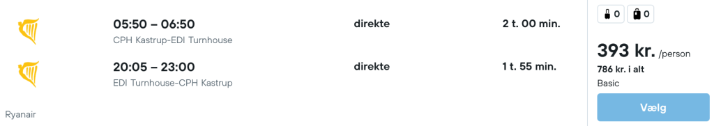 Tjek altid datoerne for at se om de passer sammen før du bestiller, da vi kan have begået fejl. Tjek derudover også prisen på begge ting før du bestiller det ene, da prisen kan have ændret sig.