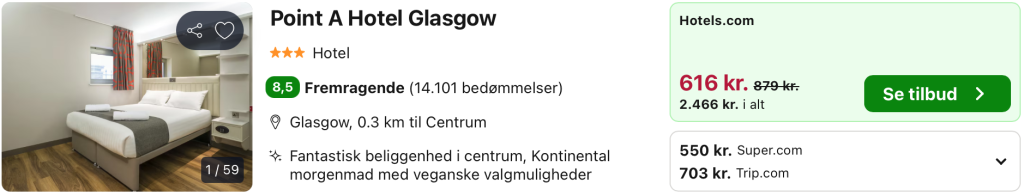 5 dages forlænget weekend i Glasgow for kun 1.493,- per person inkl. fly og godt 3-stjernet hotel med central beliggenhed!