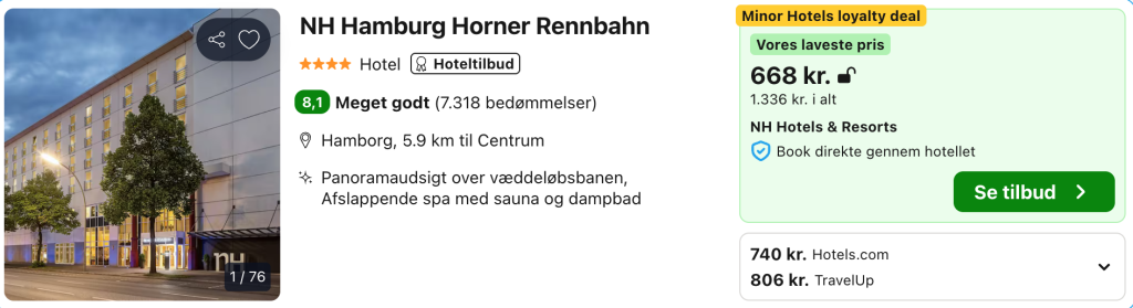 Bemærk: Den samlede pris for opholdet er 1.336,- for 2 personer i et dobbeltværelse, hvilket svarer til 668,- per person. Der kan være mindre prisforskelle på mobil og pc. Undersøg med fordel, hvor det er billigst inden bestilling. Rejs365 er ikke et rejsebureau, men en rejseside, der finder gode tilbud! – Vi modtager kommission, men det påvirker ikke din pris! Læs mere her |