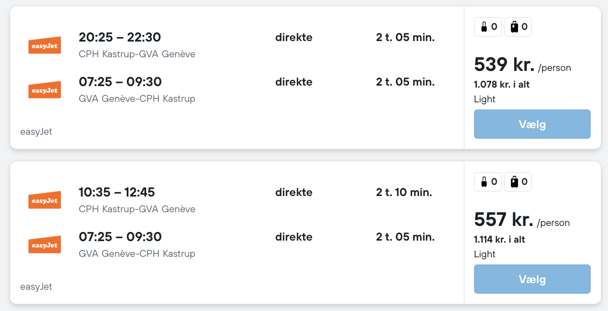 Flyprisen inkluderer en lille taske, men bagage kan tilkøbes.