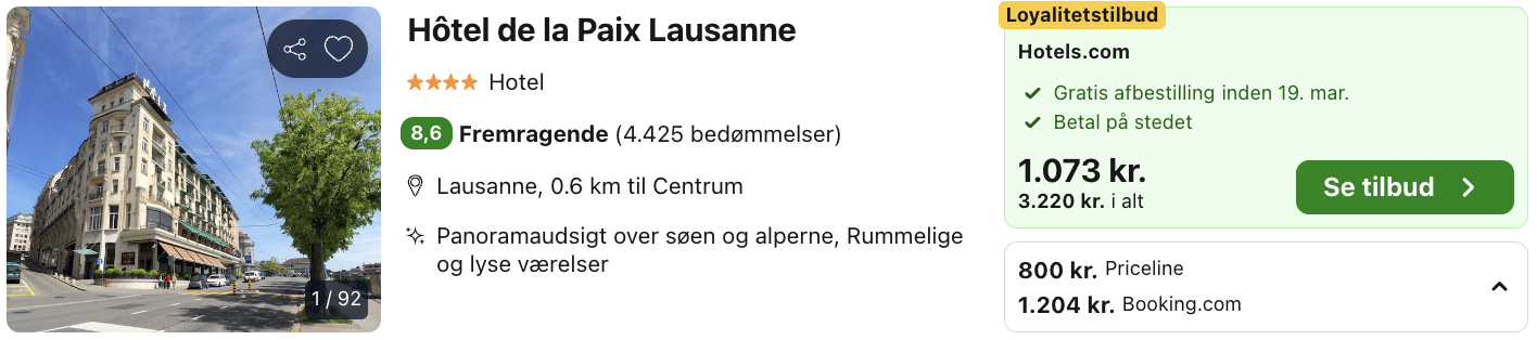 4 dages forlænget weekend i Lausanne i Schweiz for kun 1.739,- per person inkl. fly og 4-stjernet hotel med god beliggenhed!
