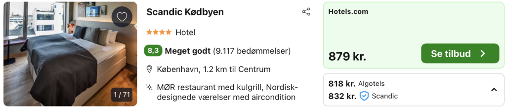 Vi har taget udgangspunkt i et ophold fra den 5. – 6. april på Scandic Kødbyen, der er et moderne hotel med masser af charme, perfekt placeret i Københavns cooleste kvarter, Kødbyen. Hotellet er indrettet i en rå, urban stil, der passer perfekt til områdets kreative vibe. Her kan du slappe af i de hyggelige værelser, nyde en middag i hotellets populære restaurant eller hænge ud i gårdhaven med en drink i hånden. Med både Hovedbanegården og byens bedste spisesteder og barer lige om hjørnet, er det et ideelt sted at bo, uanset om du er i byen for arbejde eller fornøjelse.