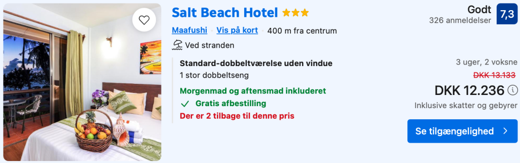 Trivago oplyser den forkerte pris. Den korrekte pris er 12.236,- for 21 nætter inkl. halvpension for 2 personer.