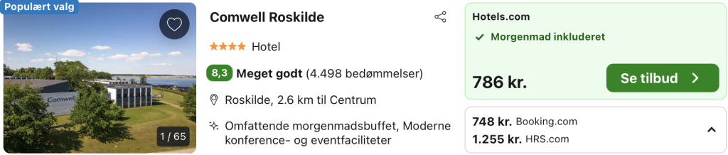 Vi har taget udgangspunkt i et ophold fra den 6.- 7. marts på Comwell Roskilde, der er et moderne og stilfuldt hotel beliggende i den historiske by Roskilde, kun en kort afstand fra byens centrum og den smukke natur omkring fjorden. Hotellet tilbyder en ideel kombination af komfort, praktiske faciliteter og en afslappende atmosfære, hvilket gør det til et fremragende valg for både forretningsrejsende og turister, der ønsker at udforske området.