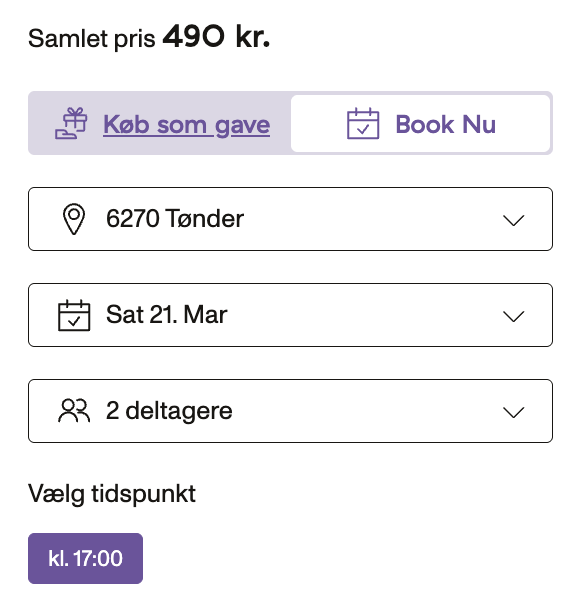 | I ALT | 605,- | Pris pr. person ved 2 personer |