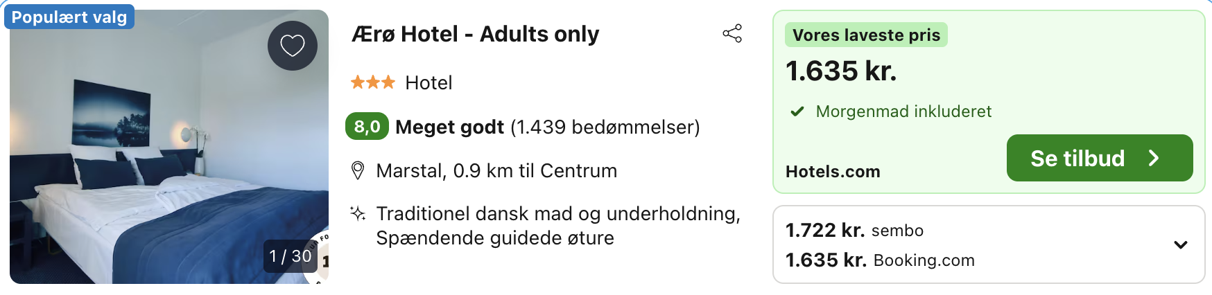 Bemærk: Den samlede pris for opholdet er 1.635,- for 2 personer i et dobbeltværelse, hvilket svarer til 818,- per person.