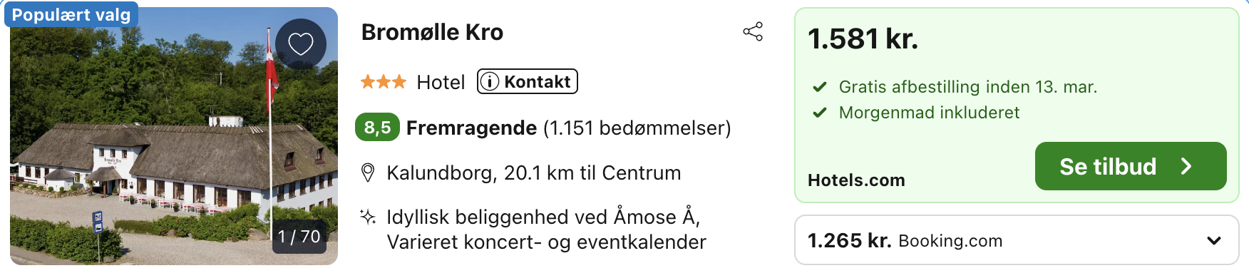 Weekendophold på Bromølle Kro for kun 633,- per person inkl. morgenmad!
