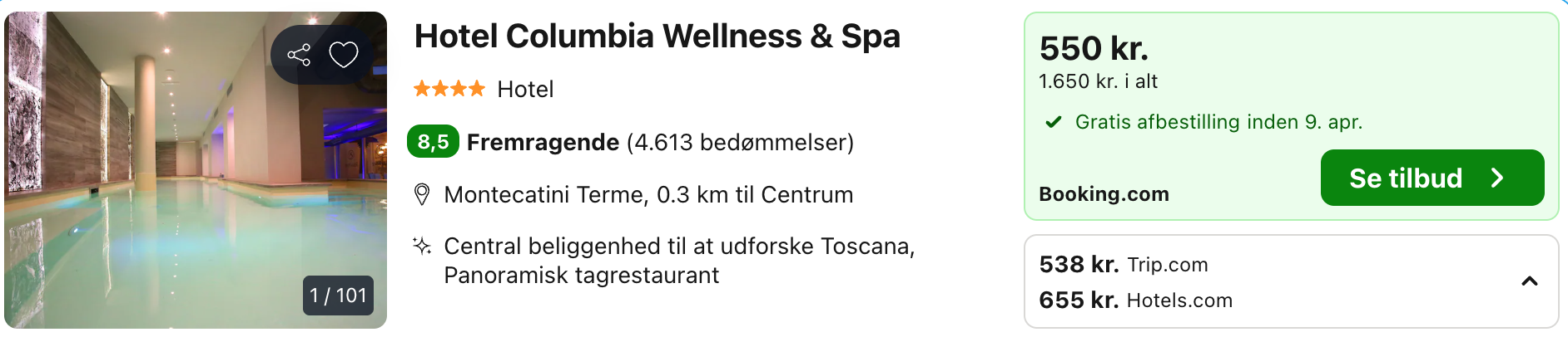 Der kan være mindre prisforskelle på mobil og pc. Undersøg med fordel, hvor det er billigst inden bestilling. Rejs365 er ikke et rejsebureau, men en rejseside, der finder gode tilbud! – Vi modtager kommission, men det påvirker ikke din pris! Læs mere her |