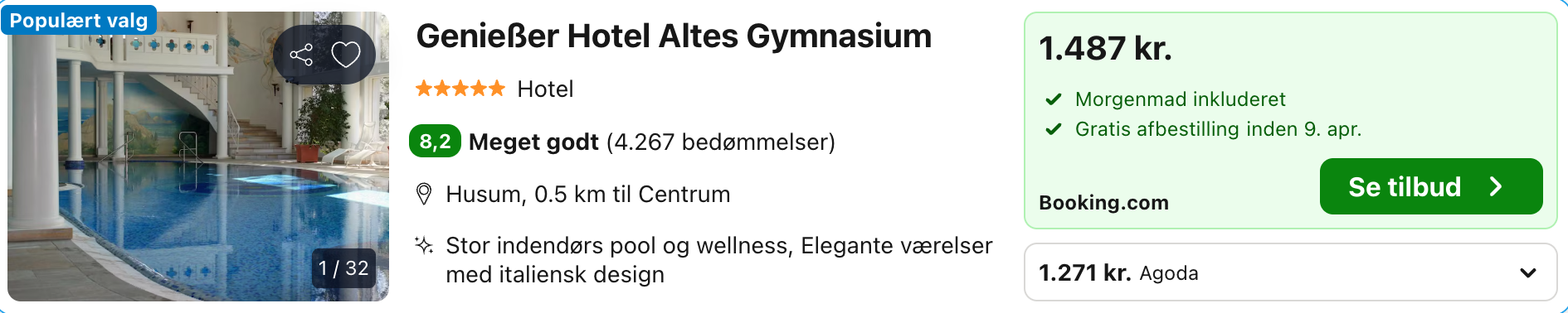 Weekendophold i Husum for kun 636,- per person inkl. flot spa-hotel med morgenmad!