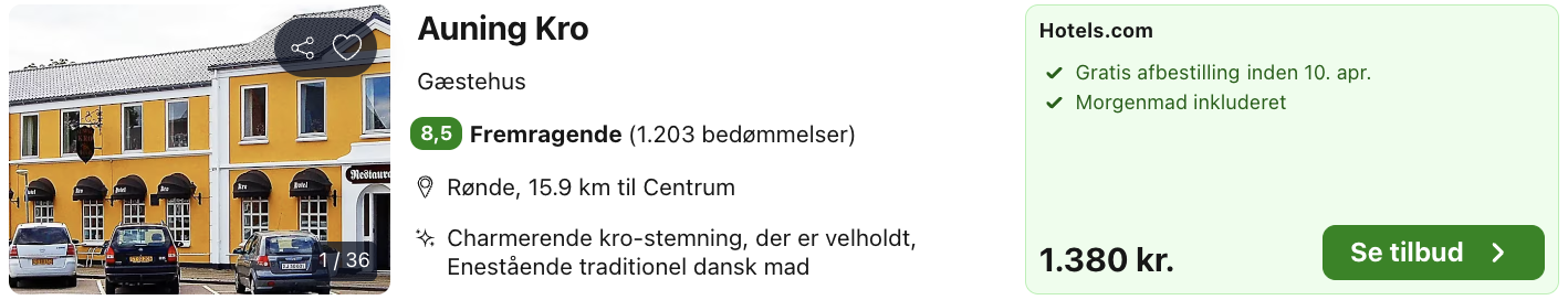 | Bemærk: Den samlede pris for hotellet er 1.380,- for 4 personer, hvilket svarer til 345,- per person inkl. morgenmad