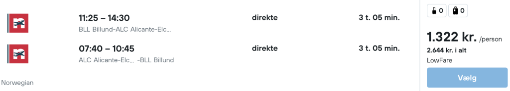 Flyprisen inkluderer kun en lille taske, men bagage kan tilkøbes.