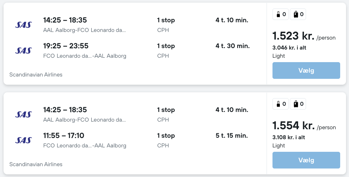 Flyprisen inkluderer kun en lille taske, men bagage kan tilkøbes.