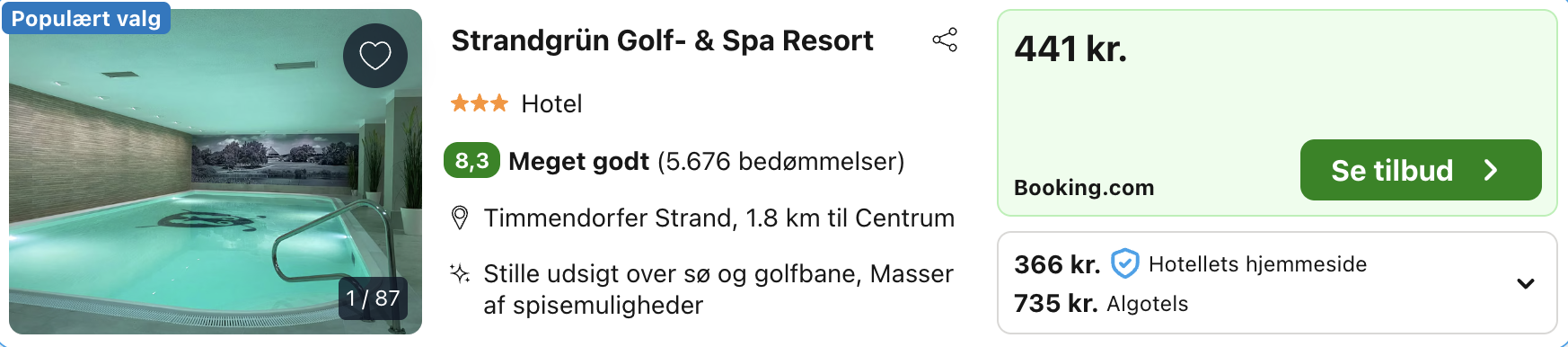 Ophold på Strandgrün Golf- & Spa Resort med lækre wellnessfaciliteter for kun 183,- per person!