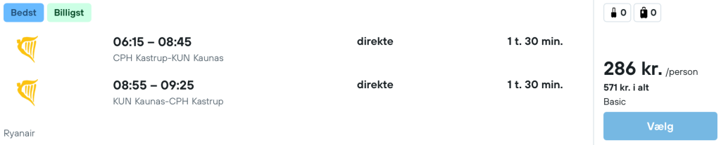 Vi har fundet billige flybilletter fra København til Kaunas: