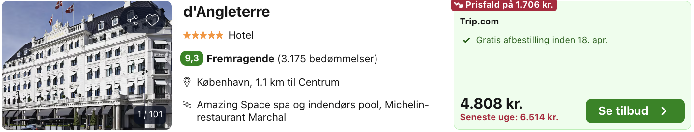 Hotel d’Angleterre i København er en sand perle af luksus og elegance, der har skrevet sig ind i historien som et af Danmarks mest prestigefyldte hoteller. Beliggende på Kongens Nytorv, i hjertet af byen, emmer hotellet af en tidløs charme, der kombinerer klassisk arkitektur med moderne komfort. Det ikoniske hotel blev grundlagt i 1755 og har siden tiltrukket prominente gæster fra hele verden, fra kongelige til kulturpersonligheder.