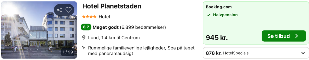 Weekendophold på det 4-stjernede First Hotel Planetstaden i Lund for kun 632,- per person inkl. halvpension og adgang til spa på toppen af hotellet med Skånes største massagepool og fantastisk panoramaudsigt over omgivelserne!