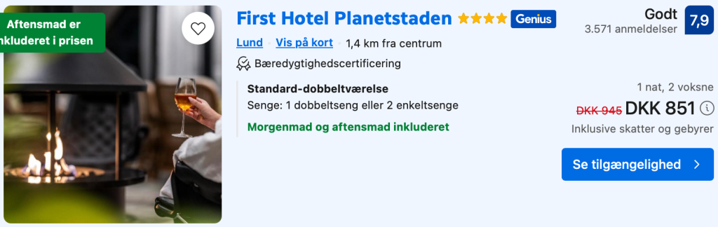 Vælg booking.com på trivago og opret en gratis bruger eller log ind. Derved opnås den billigste pris.