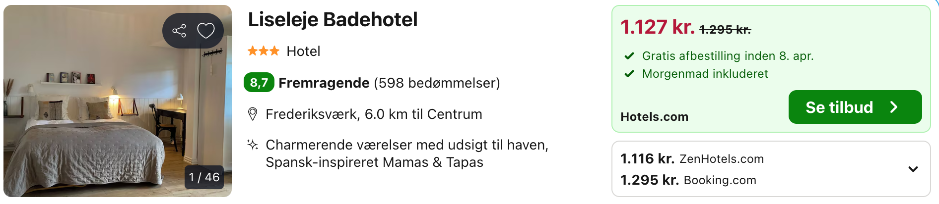 Weekendophold på Liseleje Badehotel for kun 558,- per person inkl. morgenmad!