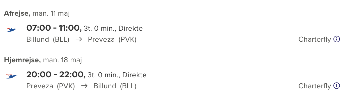 Hvis rejsen er med “Vis rejse” link, så er der tale om en pakkerejse, hvor fly og hotel bestilles på en gang.
