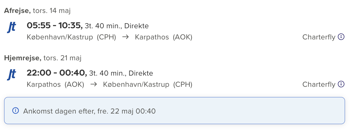 Tjek altid datoerne for at se om de passer sammen før du bestiller, da vi kan have begået fejl. Tjek derudover også prisen på begge ting før du bestiller det ene, da prisen kan have ændret sig.