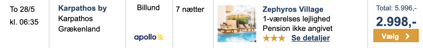 Hvis rejsen er med “Vis rejse” link, så er der tale om en pakkerejse, hvor fly og hotel bestilles på en gang.