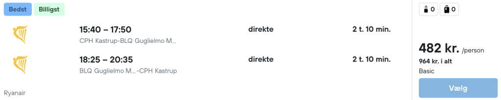 På vores flysøgemaskine har vi fundet billige flybilletter fra København til Bologna: