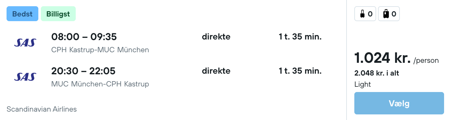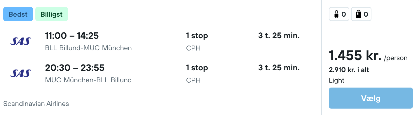 Flyprisen inkluderer kun en lille taske, men bagage kan tilkøbes.