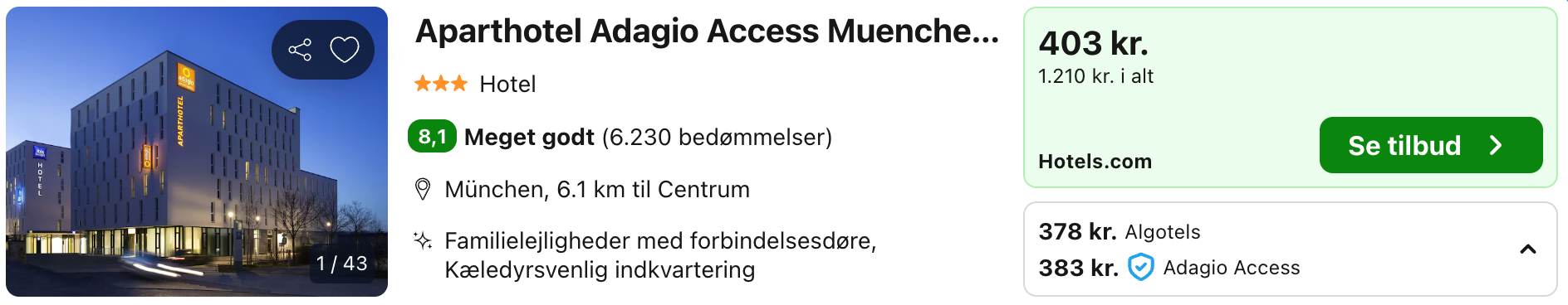 Bemærk: Husk at lade søgningen blive helt færdig. Der kan være mindre prisforskelle på mobil og pc. Undersøg med fordel, hvor det er billigst inden bestilling. Rejs365 er ikke et rejsebureau, men en rejseside, der finder gode tilbud! – Vi modtager kommission, men det påvirker ikke din pris! Læs mere her |