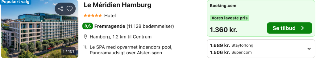Weekendophold i Hamborg på designhotel Le Meridien for kun 680,-