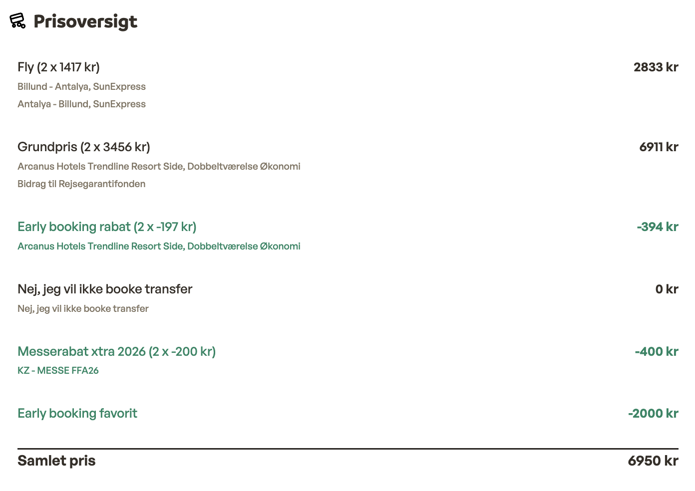 Husk at benytte rabatkoden FFA26 Rejs365 er ikke et rejsebureau, men en rejseside, der finder gode tilbud! – Vi modtager kommission, men det påvirker ikke din pris! Læs mere her |