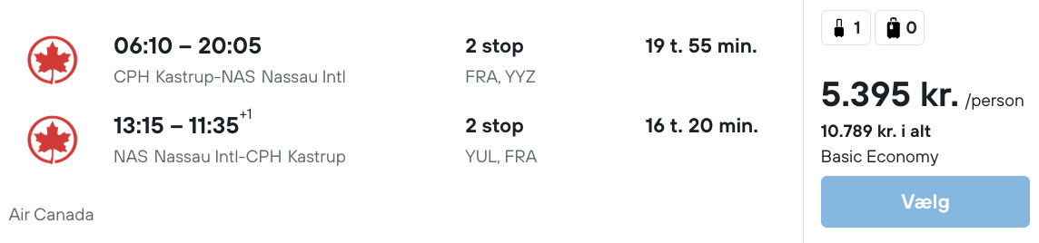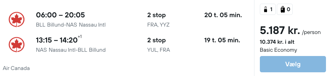 På vores flysøgemaskine har vi fundet billige billetter fra Billund og København til Bahamas.