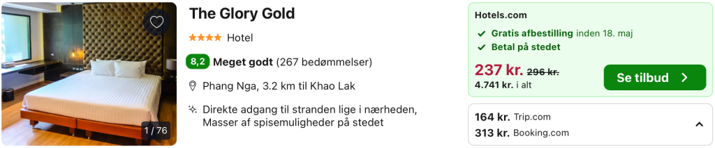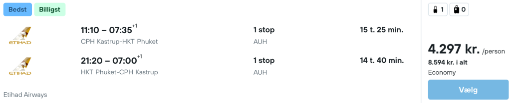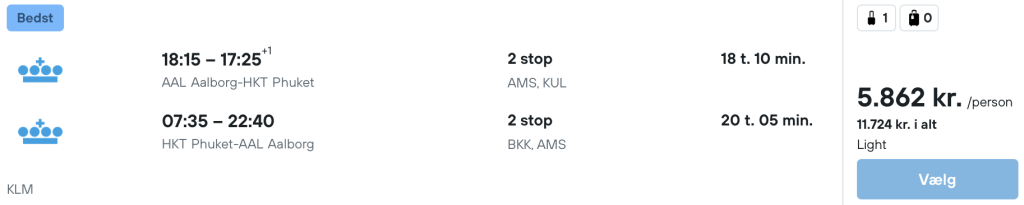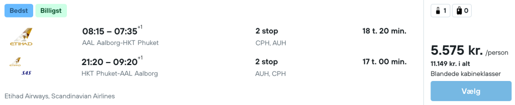 Hvis rejsen er med “Vis rejse” link, så er der tale om en pakkerejse, hvor fly og hotel bestilles på en gang.