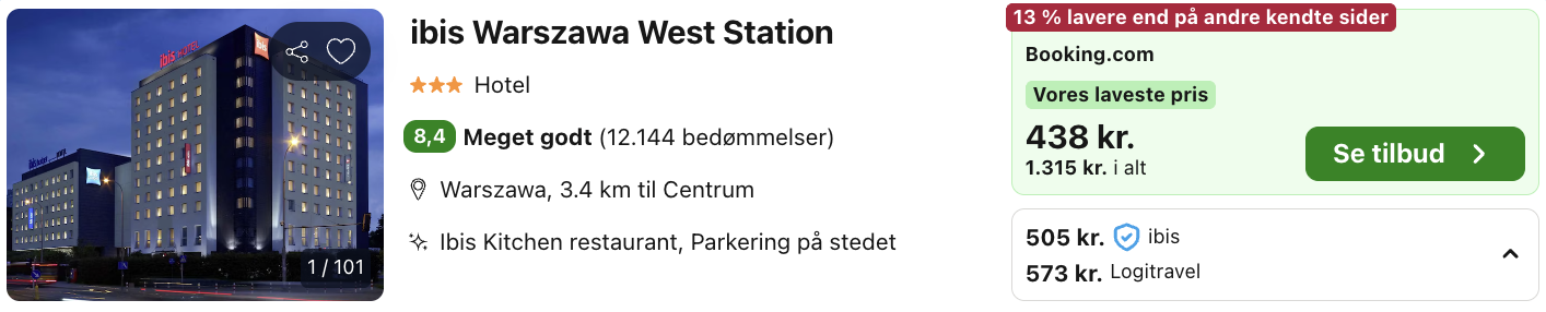 | Bemærk: Den samlede pris for hotellet er 1.315,- for to personer i et dobbeltværelse, hvilket svarer til 658,- pr. person.