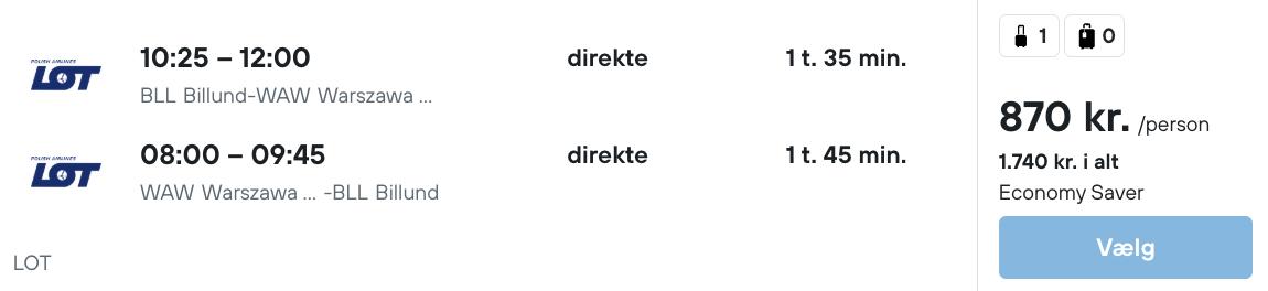 På vores flysøgningsmaskine har vi fundet billige flybilletter fra København og Billund til Warszawa: