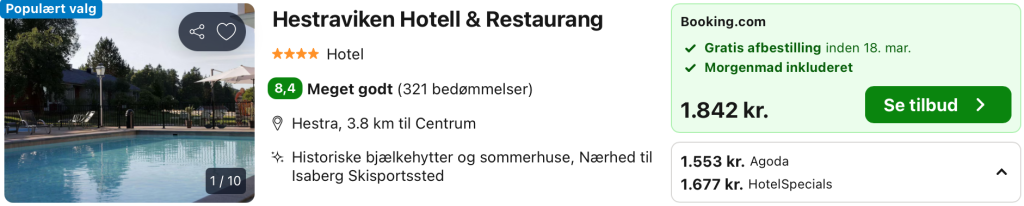 Bemærk: Den samlede pris for opholdet er 1.553,- for 2 personer i et dobbeltværelse, hvilket svarer til 777,- per person. Der kan være mindre prisforskelle på mobil og pc. Undersøg med fordel, hvor det er billigst inden bestilling. Rejs365 er ikke et rejsebureau, men en rejseside, der finder gode tilbud! – Vi modtager kommission, men det påvirker ikke din pris! Læs mere her